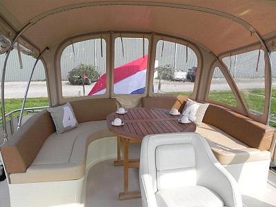 Unser Flagschiff hat eine aussergewöhnlicher Ausstattung, hier befinden sich die folgenden extra Sachen, neben der obergenannten Standartausrüstung an Bord : Generator 8KW, Keramik Kochherd, Geschirrspüler, Kühlschrank an Deck, Loungebank an Deck, 2 Wendeltreppen mit Beleuchtung, 2 Haarföhns, 3 Flatscreenfernseher (elektr. hochfahrend im Salon), 2 Dvd-player, 3 CD/MP3 Player, Waschmaschine, Trockner, , das Kabrioverdeck mit integrierten Bimini überdeckt das komplette Achterdeck und ist ganz zu zu schliessen. Diese Yacht hat 2 getrennte Kabinen mit 2 XL Doppelbetten.