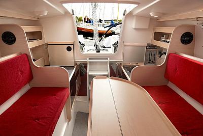 In de kajuit vindt u een kombuis met koelbox en dubbele gaspit, terwijl de navigatiehoek voor nog meer opbergruimte zorgt. Onder de kuipvloer is een dubbel bed, en voorin een toiletruimte en nóg een dubbel bed. Indien gewenst is de salontafel ook om te bouwen tot dubbel bed.