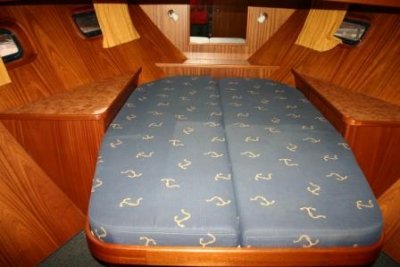 Einteilung:Geräumige Vorderkajüte mit Doppelbett und 2.Kajüte mit Doppelbett uber Steuerbord.2.Badezimmer mit Toilette, Dusche und Waschbecken.Grosszügiger Salon mit Sitzecke und Küche mit Kühlschrank, Kaffeemaschine und Microwelle. Dinette, welche auch als Doppelbett dienen kann.