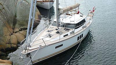 Eine von insgesamt 4 Sirius Yachten in unserer Charterflotte!Die Sirius 35 DS "Blue Fish" in Heiligenhafen bietet bei einer Länge über alles von 10,60 m Platz für maximal 4 Erwachsene und 2 Kinder.Nicht ohne Stolz möchten wir Sie mitnehmen auf eine Yacht, die kaum in der Charterbranche vertreten ist - oder wie Chris Beeson von Yachting Monthly es schrieb: ??die eindrucksvollste Yacht zu erforschen, die wir je getestet haben?.Fazit des Tests der Sirius 35 DS "Blue Fish" in Heiligenhafen: "Dieses ist die höchste Punktzahl, die wir je ausgelobt haben und dies mit einigem Abstand, und es spiegelt den Reichtum an Ideen, handwerklichem Können und den Stolz wider, mit dem diese außergewöhnliche Yacht gebaut wurde. Sie ist nicht günstig, aber für eine Yacht dieser Qualität hat sie tatsächlich ein sehr gutes Preis-Leistungs-Verhältnis. Für Einige ist ihr Aussehen vielleicht ein Thema, aber Yachten werden gebaut, um zu segeln - wenn sie etwas zum Ansehen haben möchte, kaufen Sie ein Bild." Der Rumpf der Sirius 35 DS "Blue Fish" in Heiligenhafen wurde von Marc-Oliver von Ahlen gezeichnet. Die Sirius 35 DS "Blue Fish" in Heiligenhafen hat fast keinen Überhang, einen trapezförmigen Spant, einen breiten Spiegel und nach hinten gepfeilte Salinge. Der Bug reicht im Vorfuß etwa 20 cm tief unter Wasser ist scharf geschnitten und geht in einen V- förmigen Spant über, der noch bis fast an den Kimm-Kiel heran reicht, so dass sie auch rauere Wetterbedingungen gut meistern wird. Die Sirius 35 DS "Blue Fish" in Heiligenhafen hat mit 53,5 Quadratmetern eine eher untertakelte Segelfläche, 22 Quadratmeter misst die Selbstwendefock. Das Geschwindigkeitspotential ist trotzdem sehr gut! Sie wiegt mit leeren Tanks 7,4 Tonnen (Anteil Kiel 35%). Der Rumpf wird über der Wasserlinie als Sandwich mit Divinycell-Schaumkern unter Vakuum verklebt, unter der Wasserlinie als Voll-Laminat. Die Schotten sind allseitig anlaminiert, ebenso Rumpf und Deck. Der Bleikiel ist mit dem Rumpf mit in den Kiel eingegossenen Edelstahlbolzen durch breite Flachstähle verklebt und verschraubt. Die Kräfte werden durch massiv laminierte Bodenwrangen- Sektionen großflächig weiterverteilt. Das vorbalancierte Ruderblatt hängt an einem Halbskegg. Die Sirius 35 DS "Blue Fish" in Heiligenhafen ist mit einem Kimmkiel ausgestattet. Der geringere Tiefgang hat keinen Einfluß auf die guten Segeleigenschaften, der Tiefgang von nur 1,35 ermöglicht das Anlaufen vieler kleinerer dänischer Häfen.Es ist sicher, sich an Deck auf der Sirius 35 DS "Blue Fish" in Heiligenhafen zu bewegen, denn die Luken sind in das Deck eingelassen, das Schanzkleid steigt zum Vordeck hin an und die Reling ist aus Edelstahl. Auf Deck findet man Handläufe und die Seitendecks enden mit Speigatten, dort wo sie auf den hohen Süllrand treffen. Alle Fallen werden über das Cockpitdach an Backbord zurückgelenkt, durch Spinlocks geführt, welche vor der Andersen 28 Winsch angeordnet sind, und dann in einen Fallenkasten geführt. Die Form des Süllrands und die über 2,00 m langen Bänke sind ergonomisch geformt und durch den Decksaufbau und die hohen Rückensülls findet man ein Optimum an Sicherheit und Wetterschutz. Eine Fußstütze aus Edelstahl und ein kleiner Cockpittisch sind vor der Steuersäule angeordnet, an der auch der größere Cockpittisch montiert werden kann. Die Großschot mit Feintrimmsystem (4:1 / 8:1) ist an einem Edelstahlbügel über der Steuersäule angeschlagen und die Andersen 52er Genuawinschen liegen innerhalb der Reichweite des Rudergängers. Ein Raymarine C90 Plotter ist an der Steuersäule montiert und der Rest der Raymarine ST60 Instrumente befindet sich am Schott neben der Niedergangstür. Der Autopilot und Motor-Fernbedienung sind auf Backbord im Süllrand und der Motorschalthebel auf Steuerbord an der Steuersäule. Das geteilte Achterstag lässt sich mechanisch spannen.Die beiden großen Backskisten auf der Sirius 35 DS "Blue Fish" in Heiligenhafen bieten insgesamt 3.000 Liter Stauraum neben einem Stauraum für die Gaskisten und einem für die Rettungsinsel neben der Rudergängerbank. Die Backbordseite der Rudergängerbank lässt sich anheben und eine Tür öffnet den Weg auf die Badeplatform. Dort befindet sich eine Dusche und auf der Heckreling sind zwei Heckkorbsitze montiert und ein Rohr zur Montage eines Davits, der aus schwerem Heben ein Kinderspiel macht.Die Sirius 35 DS "Blue Fish" in Heiligenhafen ist mit einem 50 PS Volvo Motor mit dreiflügligem Volvo Faltpropeller ausgestattet. Der liegt nur einen Meter vor dem Ruder, so dass der Propellerschub das Ruderblatt fast direkt anströmt und die Sirius augenblicklich reagiert. Mit 2200 UpM schafft sie eine Geschwindigkeit von 6,6 Knoten und bei Marschfahrt mit 3200 UpM sogar 7,9 Knoten. Voraus, kann sie fast innerhalb ihrer eigenen Länge wenden und sie benötigt nur zwei Schiffslängen um aufzustoppen.