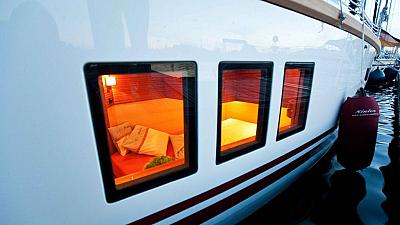 Steuermann, Navigator, Koch und Crew im Salon sind alle auf der gleichen Augenhöhe auf der Sirius 35 DS "Blue Fish" in Heiligenhafen! Wenn man die ?Waschbrett?-Tür zum Niedergang geöffnet hat und das transparente Schiebeluk aus Polykarbonat mit Ocean-Air Rollo zurückgeschoben hat, sieht man die Edelstahl-Handläufe an beiden Seiten. Eines der zentralen Prinzipien bei Sirius ist das der einheitlichen Sichtebene. Der sitzende Rudergänger, der Navigator, Gäste im Salon oder der Koch in der Pantry sind auf der gleichen Augenhöhe und ?in Sicht?. Der Kartentisch auf der Sirius 35 DS "Blue Fish" in Heiligenhafen ist an Steuerbord angeordnet und bietet freie Rundumsicht und einen drehbaren Sitz. Dieser lässt sich in der Höhe verstellen, so dass man die nächste Reise planen kann, dann die Sitzposition verändert und sich der Geselligkeit im Salon auf Augenhöhe anschließt. Der Kartentisch selbst reicht bis unter das Seitenfach, hat eine vernünftige Größe und Tag/Nacht Beleuchtung. Voraus findet man einen Plotter, aber ansonsten ist der Platz für Instrumente ein wenig knapp bemessen. Stauraum ist überall hervorragend, einschließlich eines belüfteten, selbst-entwässernden Ölzeugschrankes direkt hinter dem Sitz.Am Salontisch auf der Sirius 35 DS "Blue Fish" in Heiligenhafen sitzen sechs Personen sehr bequem mit ausreichender Stehhöhe. Der Tisch lässt sich absenken und in eine zusätzliche 1,40 m breite und 2,20 m lange Doppelkoje verwandeln. Man genießt das 360 Grad Panorama. Wenn man einen Salonsitz vorklappt, gelangt man in den Technikraum, der vollständig ausgestattet ist mit Werkbank, Stauraum und Zugang zu den Batterien und zum Motor.Die Pantry in Längsrichtung liegt eine Stufe tiefer an Steuerbord mit rund 2,00 m Stehhöhe. Und auch hier fordert die Anzahl der Staumöglichkeiten auf der Sirius 35 DS "Blue Fish" in Heiligenhafen die Gesetze der Physik heraus ? 1600 Liter in der Pantry und im Salon. Die Schubkästen auf Vollauszügen gleiten auf Kugellagern und haben Teakeinsätze, die der Größe ihres Geschirrs individuell angepasst werden. Der 2-flammige ?Ono? Gasherd mit Ofen hat eine Schiebeabdeckung, aber es gibt keinen Mangel an Arbeitsfläche, denn der 100 Liter Kühlschrank wird von vorne geöffnet. Es gibt sogar noch mehr Stauraum in Schwalbennestern und die zu dimmende Beleuchtung erzeugt eine angenehme Atmosphäre. Zwei Deckenlampen und eine zu öffnende Tür sorgen dafür, dass der Salon gut beleuchtet und belüftet ist.Unter dem Salon der Sirius 35 DS "Blue Fish" in Heiligenhafen befindet sich eine Doppelkoje mit mehr als 2,00 m Stehhöhe und einer Koje von 2,04 m Länge und 1,60 m durchgehender Breite. Sie ist zentral in der Mitte angeordnet und damit am bewegungsärmsten und ruhigsten Ort des Schiffes. Es gibt einen Kleiderschrank vor der Koje und zwei Schubkästen unter der Koje. Zusätzlich findet man noch weitere Staumöglichkeiten unter dem Sitz und dem Bett. Der Dieseltank ist unter dem Fußende der Koje angeordnet.Zwei dimmbare LED Lampen sorgen für gute Beleuchtung bei Nacht. Tagsüber sorgen eine zu öffnende Luke, ein Skylight zum Salon und drei Rumpffenster mit Rollos für viel Lichteinfall. Die drei Rumpffenster machen diesen Ort zu einem erstaunlich erholsamen Platz zum Entspannen und um den vorbeiziehenden Wellen zuzuschauen.Die Rumpffenster sind aus dem gleichen Polycarbonat hergestellt, welches das Deutsche Militär für kugelsichere Armeefahrzeuge benutzt. Allerdings sind diese beim Militär 6 mm dick, bei Sirius jedoch 15 mm für Rumpffenster und 10 mm im Deckssalon. Die Vorschiffskabine hat einen direkten Zugang zum eigenen Bad. Die Doppelkoje misst 1,75 in der Breite und 2,03?2,15 m in der Länge und ist nach Backbord angerichtet.Überzeugen Sie sich selbst - Wir freuen uns auf Sie!