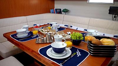 Kaum eine Yacht in ihrer Klasse bietet mehr Raum und Komfort. Die Bavaria cruiser 46 "Elementary" in Heiligenhafen bietet ausreichen Platz für Gäste am Salontisch und eine Kleine Insel in der Mitte des Salons, an der umklappbare Sitze verbaut sind.Die große Tafel liefert Platz für acht Personen und befindet sich gegenüber der geräumigen Küche. Die Küche der Bavaria cruiser 46 "Elementary" in Heiligenhafen verfügt über viele Schränke und große Arbeitsflächen und hat somit viel Raum zum verstauen von Lebensmitteln und jeglichen Proviant zur Verfügung.Betrachtet man nun den innen Bereich noch genauer, dann fallen einem sofort die riesigen Kojen ins Auge.Heck und Bug Kojen liefern mehr als ausreichend Platz zum wohlfühlen und entspannen auf der Bavaria cruiser 46 "Elementary" in Heiligenhafen. Um noch mehr Raum zu bieten hat die Bavaria cruiser 46 "Elementary" in Heiligenhafen keinen kommerziellen Navigationstisch. Jedoch lässt sich ein innovativer Navigationsplatz mit dem Salontisch perfekt kombinieren.Die Lampen die eingebaut wurden, kommen nur in der Nacht zum Einsatz, da die Bavaria cruiser über ein sehr gutes Licht Konzept verfügt. Die vielen Fenster und Gucklöcher sorgen für einen sensationellen Lichteinfall.