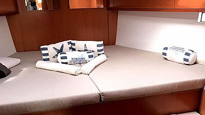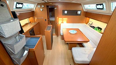 Kaum eine Yacht in ihrer Klasse bietet mehr Raum und Komfort. Die Bavaria cruiser 46 "Elementary" in Greifswald bietet ausreichen Platz für Gäste am Salontisch und eine Kleine Insel in der Mitte des Salons, an der umklappbare Sitze verbaut sind.Die große Tafel liefert Platz für acht Personen und befindet sich gegenüber der geräumigen Küche. Die Küche der Bavaria cruiser 46 "Elementary" in Greifswald verfügt über viele Schränke und große Arbeitsflächen und hat somit viel Raum zum verstauen von Lebensmitteln und jeglichen Proviant zur Verfügung.Betrachtet man nun den innen Bereich noch genauer, dann fallen einem sofort die riesigen Kojen ins Auge.Heck und Bug Kojen liefern mehr als ausreichend Platz zum wohlfühlen und entspannen auf der Bavaria cruiser 46 "Elementary" in Greifswald. Um noch mehr Raum zu bieten hat die Bavaria cruiser 46 "Elementary" in Greifswald keinen kommerziellen Navigationstisch. Jedoch lässt sich ein innovativer Navigationsplatz mit dem Salontisch perfekt kombinieren.Die Lampen die eingebaut wurden, kommen nur in der Nacht zum Einsatz, da die Bavaria cruiser über ein sehr gutes Licht Konzept verfügt. Die vielen Fenster und Gucklöcher sorgen für einen sensationellen Lichteinfall.