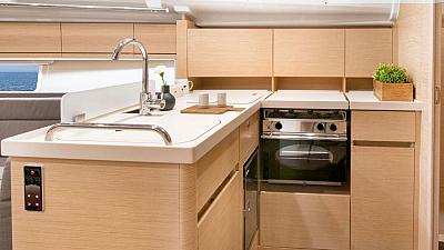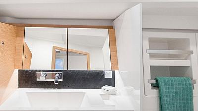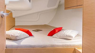 Die Hanse-Werft setzt auf innovative Veränderungen an Deck, wie auch unter Deck der Hanse 418 "Esprit" in Flensburg.Glas-Skylights an beiden Seiten des Niedergangs leiten das Sonnenlicht direkt unter Deck und schaffen in Salon und Achterkabinen ein wunderbar sonniges Ambiente.Sensationell stilvoll die Hanse 418 "Esprit" in Flensburg: Moderne klare Linien kombiniert mit einem eleganten Wohndesign, akzentuiert durch perfekte Lichtführung von dimmbaren Leuchten und Sonnenlicht.Komfortable Eignerkabine, optional mit exklusivem Designer-Bad. Zwei große Fenster und ein Oberlicht machen das Vorschiff der Hanse 418 "Esprit" in Flensburg zum hellsten ihrer Klasse. Nachts blickt man vom eleganten Inselbett aus direkt in den Sternenhimmel. Ein Schrank am Kopfende bietet Stauraum und dient dank hochwertiger Polsterung als Kopfteil. Das helle, großzügige Bad überzeugt mit viel Platz für persönliche Dinge und angenehmer Stehhöhe.Die Achterkabinen verfügen, wie der Salon, über einen herrlichen Ausblick aufs Meer. Dimmbares Licht, ein sehr großer Kleiderschrank sowie viel Bewegungsfreiheit schaffen auf der Hanse 418 "Esprit" in Flensburg auch hier ein entspanntes Wohngefühl.