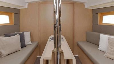 Für das Team von Beneteau bestand die Herausforderung darin, die Aufenthaltsbereiche im Salon zu vergrößern, und damit mehr Privatsphäre in der Eignerkabine zu bieten.Die L-förmige Küche der Oceanis 35.1.2 "Basti" in Flensburg ermöglicht die Organisation eines echten Salons mit gegenüberliegenden Sitzgelegenheiten.Dank seines reichlich optimierten Volumens kann der Salon nun bis zu acht rund um den Tisch sitzende Personen aufnehmen.Der Kartentisch der Oceanis 35.1.2 "Basti" in Flensburg wurde ebenfalls überarbeitet. Der praktische und effiziente Tisch lässt sich hochklappen, um mehr Platz im Salon zu schaffen. .Urlaub mit der Familie oder ein Törn mit Freunden, mit dieser Yacht haben Sie eine wirklich unvergessene Zeit.