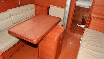 Die Dufour Performance 40e "Passion" in Flensburg besticht durch frisches Design und das elegante, großzügige Innenraumkonzept. Auch ambitionierte Fahrtensegler wird Dufour zufriedenstellen. Eine Yacht mit eigenem Charakter!Beim Gang über Deck fallen zuerst die vier versenkten Mittelluken auf, die für reichlich Licht unter Deck sorgen.Unter Deck der Dufour Performance 40e "Passion" in Flensburg trifft der Besucher auf einen freundlichen Ausbau. Zwei dünne übereinanderliegende Fensterstreifen im Rumpf ver?leihen dem Boot von außen eine besondere? Note, lassen zusätzliches Licht in den Salon? und ermöglichen einen Ausblick. Um den noch ?dort an den Außenwänden des Salons Stauraum zu schaffen, zog Innenarchitekt Patrick? Roseo die hinter den Rückenpolstern liegen?den Holzeinbauten nach oben und versah sie mit Klappen - eine ebenso praktische wie schöne Lösung.Ein aus dem Pantryblock hochgeklapptes Brett plus Polster schafft einen weiteren Sitzplatz am Tisch.Der achtere Teil der Vorschiffskoje lässt sich hochklappen, wodurch Stauraum gut zugänglich wird.