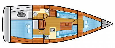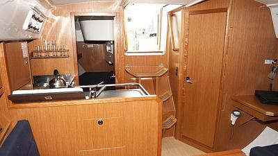 Unter Deck überrascht die Bavaria cruiser 32 "EMELIE" in Heiligenhafen durch einen äußerst großzügigen Salon mit gut dimensionierten Längskojen.Der große Tisch in der Mitte der Bavaria cruiser 32 sorgt dafür, dass die ganze Crew gemüdlich Beisammensitzen kann. Besonders die L-förmige Pantry gefällt: Eine große Arbeitsfläche und ein geräumiger Kühlschrank sorgen für ein entspanntes kochen auf der Bavaria cruiser 32.Bemerkenswert ist die hochwertige Qualität der Einbaumöbel und das gilt besonders auch für das gute Finish in der geräumigen Nasszelle.Gut nutzbarer Stauraum findet sich in allen Bereichen der Bavaria cruiser 32 "EMELIE" in Heiligenhafen.
