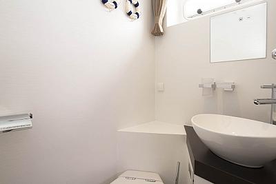 Die beiden Kabinen sind jeweils einem großen, freistehenden Bett, Toilette und separater Dusche mit Haartrockner ausgestattet.