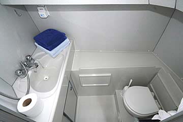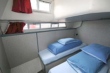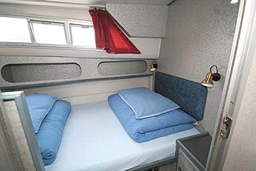 Geeignet für 4 bis 6 Personen, ideal für drei Paare oder eine Familie. Heckkabine mit 1 Doppel- oder 2 Einzelbetten, Bugkabine mit 1 Doppel- oder 2 Einzelbetten, Seitenkabine mit Doppelbett, Salon, 2 WC mit Waschbecken und Dusche, große Küche, Radio/CD-Player mit Anschluss für MP3-Player, 12-V-Anschlüsse, 350W-Inverter für 220V (nicht für Haartrockner geeignet!), Warmwasserversorgung, Zentralheizung, 2. Steuerstand aussen ("Flybridge"), Sonnendeck, Beiboot. Moderne Einrichtung und umfangreiche Ausstattung.