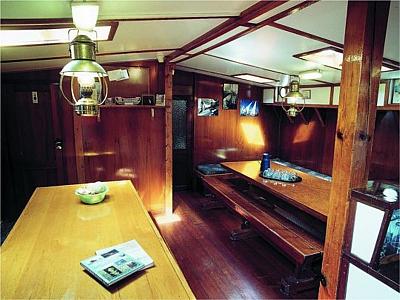 Wenn Sie nach einem langen Segeltag entspannt ein leckeres Häppchen und einen Drink genießen möchten, können Sie im Aufenthaltsraum des Klippers Anna Trijntje zusammenkommen. In der Küche bereiten Sie eine leckere Mahlzeit vor und die großen Tische bieten Ihnen genug Platz für lange und gemütliche Abende an Bord.