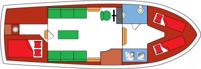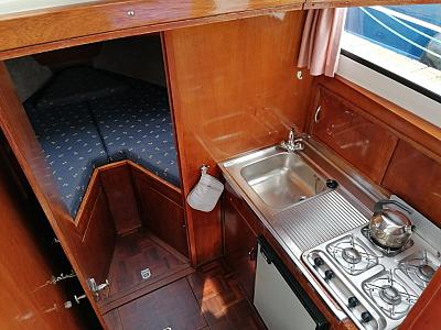 2 feste Schlafplätzen in de abschließbaren vorne Kabine (Doppelbett).