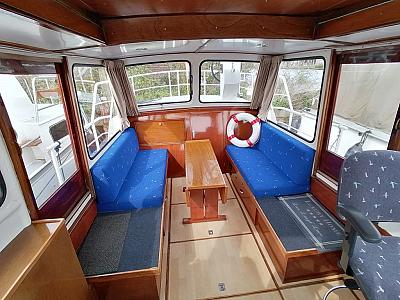 Geeignet für Anfänger - Ein gemütliches Schiff mit viel Innenraum und guter Sicht nach draußen. Die Bänke im Salon bieten Platz für 8 Personen. Dank der großen Scheiben im Salon ist die Sicht nach draußen ausgezeichnet. In Kombination mit offenem Dach kann man die Ruhe und Umgebung optimal genießen. Um die Fahrfreuden komplett zu machen, ist dieses Schiff mit Innensteuerung sowie Sonnendeck und Außensteuerung versehen.