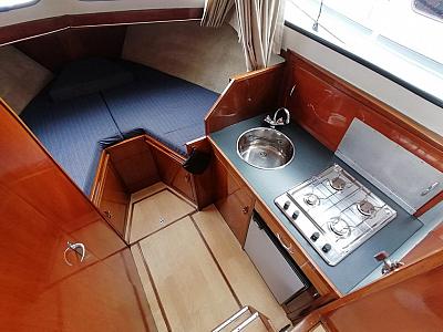 Im Vorschiff ist ein Doppelbett und 2 Personen können im Salon schlafen.