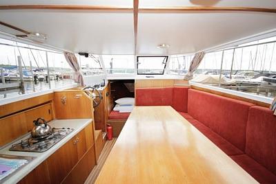 Die Silent 149 ist durch ihre optimale Ausstattung und großzügige Aufteilung sehr gut geeignet für große Familien und Gruppen. Bis zu 10 Personen finden hier ausreichend Platz. Geniessen Sie im panoramaverglasten Salon auch bei schlechten Wetter die Aussicht auf Sehenswürdigkeiten in Berlin und Naturschönheiten in Brandenburg. Auf dem großen Oberdeck ist Platz für die gesamte Crew. Ein Sonnensegel schützt vor zuviel Sonne. Dusche und WC befinden sich selbstverständlich ebenfalls an Bord.