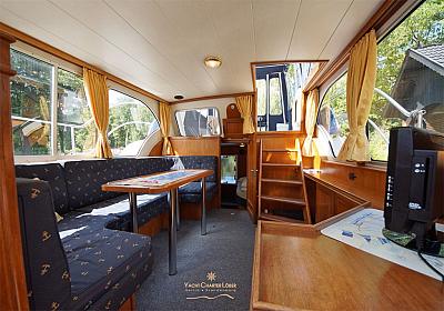 Innenbeleuchtung in Messing-Ausführung, Innenausstattung in Teakholz