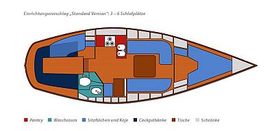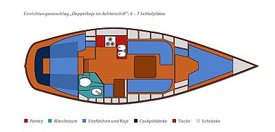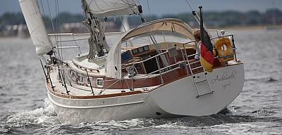 Das moderne 19/20 Rigg und die massgeschnittenen CO- Segel, in Verbindung mit einem tiefliegenden Innenballast versprechen aber auch bei leichter Sommerbrise einen schnellen Törn.