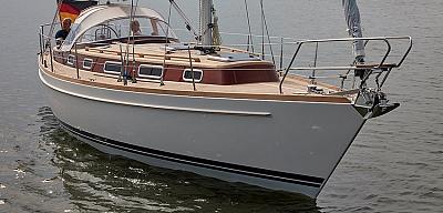 Das klassische Yachtheck der Scalar 34 classic unterstreicht die eleganten Linien und unterstützt die guten Segeleigenschaften durch eine längere Wasserlinie bei Starkwind.
