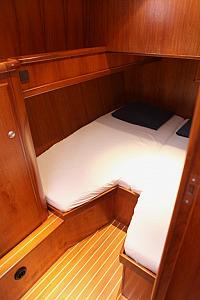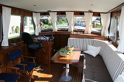 Diese kraftvolle Kutterjacht in Rundspant-Bauweise verfügt über vier Schlafplätze. Das Schiff hat eine offene Plicht, die die Mitfahrenden zum Verweilen einlädt. Es gibt einen Steuerstand im Ruderhaus/Salon und einen Steuerstand in der offenen Plicht. Der Luxus an Bord lässt zudem keine Wünsche offen. Die offene Plicht und der Salon sind auf einer Ebene angeordnet, während sich die Kombüse im Vorschiff befindet und über einen Niedergang mit drei Stufen erreichbar ist. Fernseher mit Deutsch-Kanäle.