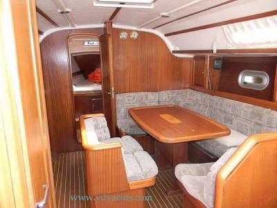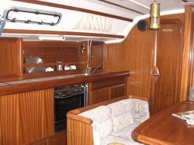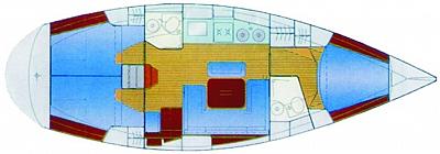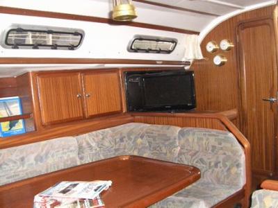 Das Schiff ist interessant und praktisch entworfen und bietet viel Raum. Die Jacht bietet Raum zu 6/7 Personen. Die Kombüse und der Salon sind raum und werden Sie überraschen, ebenso die Waschraum/Dusche. Die Segeljacht ist standard ausgefüht mit einer Bugschraube, Autopiloot, Electronenwindmesser und einem Farbkartenplotter. Die Bedienung des Großsegels und der Rollfock erfolgen vom Cockpit aus durch eine einfache und bequeme Handung.