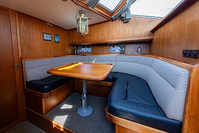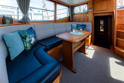 Das Achterdeck ist mit bequemen Lounge-Sofas und einem XXL-Cabriozelt ausgestattet, dass das gesamte Achterdeck einnimmt. Damit ist die Aqua Amor für alle Wetterlagen geeignet. Außerdem finden Sie hier Musikboxen, eine Steckdose, Decksbeleuchtung und eine Steuerstandheizung. Das Achterdeck ist ein wunderbarer Ort, an dem Sie sich mit anderen treffen, aber auch die Ruhe und das Rauschen des Wassers genießen können. Die Aqua Amor garantiert Ihnen unvergessliche Stunden an Bord.