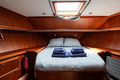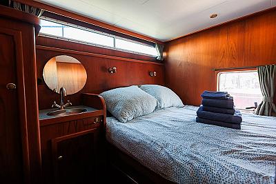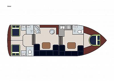 Die Aqua Amor ist ein komfortables und geräumiges Boot, geeignet für 6-8 Personen. Es gibt drei geschlossene Kabinen mit je einem Doppelbett. Das Schiff ist mit zwei Duschen und zwei elektrischen Toiletten ausgestattet. Außerdem gibt es zwei Kühlschränke mit einem kleinen Gefrierfach. Die Aqua Amor ist identisch mit Aqua Victoria und Aqua Stella.