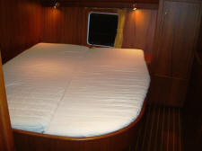 In the front cabin there are 2 single berths with slatted floor in V-form, which can be easily turned into a double bed with the matching mattress adapter.