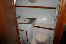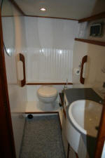 Also in the rear there is a very large bathroom with an electric toilet, washstand and spacious shower.