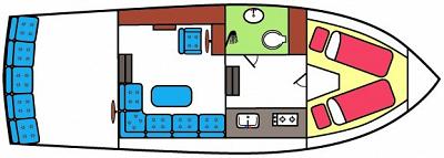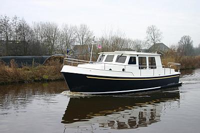 A modern, easily manoeuvrable boat. Ideal for two persons who appreciate luxury and comfort. In the closed frontcabin is a double bed. Shower/toilet and washbasin, kitchen, cosy saloon with stearingwheel.Second stearingwheel on deck, swimming platform with ladder.