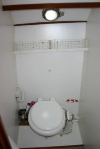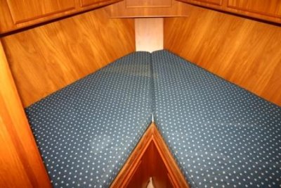 In the front cabin there are 2 fixed berths and a electric toilet. The boat also has outward opening doors onto the spacious open cockpit which is fitted with a tent.