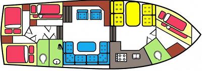 The flagship of our fleet. lt is with pride that we present this luxurious, modern yacht, equipped with all the conveniences. Extremely pleasant to cruise in thanks to its quiet 6 cylinder engine and powerful bow and stern screws. Spacious, comfortable saloon with TV/dvd and CD player. Spacious galley with dinette opposite, which also serves as a large double bed.Galley includes microwave and coffee maker. For families with children or groups from 8-11 persons.