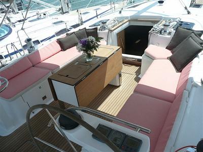 Anker & Kette, el. Ankerwinde, Rollgenua, Rollgross, Autopilot, Logge, Lot, Windmesser, Multi, GPS, Plotter, 2. Steuerstand, Radio CD, UKW-Funk, Beiboot, Rettungsinsel, Automatikschwimmwesten, Heckanker, Navigationsausrüstung, Sprayhood, Bimini, Landanschluss, Bugstrahlruder, komplette Sicherheitsausrüstung, Fernglas, Peilkompass, Werkzeug, Außendusche, Innendusche, El. Kühlschrank, Außenborder für Dingi Aufpreis, Komplette Küchenausrüstung, Gangway, Mikrowelle, 2. Kühlschrank, Heckdusche