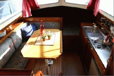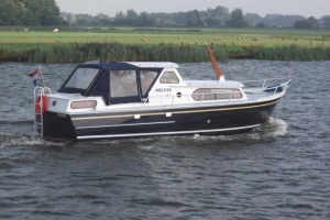 Een mooi gelijnd motorschip met prima vaareigenschappen. De krachtige motor met één handle bediening en de boegschroef garanderen probleemloos vaargenot. Vaste bruggen van 2.50 m. vormen geen enkele belemmering om de mooiste en rustigste plekjes op te zoeken. Gezellige inrichting, achterkajuit met 2 1-pers. bedden, stuurhut met 4 zitplaatsen, keuken met dinette en 2 pers. slaapplaats. Vaste zwemtrap.