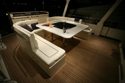 flybridge is a place for sunbathing on a sofa set, which is placed around a small table. For sunbathing and carefree lying around, there is a big bow sunlounge cushion. For adventurous exploration of islands and bays, the yacht is equipped with a 3,6 m rubber dinghy with a fast outboard engine.