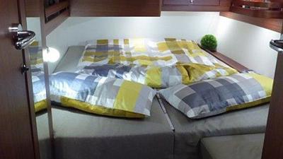 Steuermann, Navigator, Koch und Crew im Salon sind alle auf der gleichen Augenhöhe auf der Sirius 35 DS "Salsa" in Heiligenhafen!Wenn man die "Waschbrett"-Tür zum Niedergang geöffnet hat und das transparente Schiebeluk aus Polykarbonat mit Ocean-Air Rollo zurückgeschoben hat, sieht man die Edelstahl-Handläufe an beiden Seiten. Eines der zentralen Prinzipien bei Sirius ist das der einheitlichen Sichtebene. Der sitzende Rudergänger, der Navigator, Gäste im Salon oder der Koch in der Pantry sind auf der gleichen Augenhöhe und "in Sicht".Der Kartentisch ist an Steuerbord angeordnet und bietet freie Rundumsicht und einen drehbaren Sitz. Dieser lässt sich in der Höhe verstellen, so dass man die nächste Reise planen kann, dann die Sitzposition verändert und sich der Geselligkeit im Salon auf Augenhöhe anschließt. Der Kartentisch selbst reicht bis unter das Seitenfach, hat eine vernünftige Größe und Tag/Nacht Beleuchtung. Voraus findet man einen Plotter, aber ansonsten ist der Platz für Instrumente ein wenig knapp bemessen. Stauraum ist überall hervorragend, einschließlich eines belüfteten, selbst-entwässernden Ölzeugschrankes direkt hinter dem Sitz.Am Salontisch auf der Sirius 35 DS "Salsa" in Heiligenhafen sitzen sechs Personen sehr bequem mit ausreichender Stehhöhe. Der Tisch lässt sich absenken und in eine zusätzliche 1,40 m breite und 2,20 m lange Doppelkoje verwandeln. Man genießt das 360 Grad Panorama. Wenn man einen Salonsitz vorklappt, gelangt man in den Technikraum, der vollständig ausgestattet ist mit Werkbank, Stauraum und Zugang zu den Batterien und zum Motor.Die Pantry in Längsrichtung liegt eine Stufe tiefer an Steuerbord mit rund 2,00 m Stehhöhe. Und auch hier fordert die Anzahl der Staumöglichkeiten die Gesetze der Physik heraus 1600 Liter in der Pantry und im Salon. Die Schubkästen auf Vollauszügen gleiten auf Kugellagern und haben Teakeinsätze, die der Größe ihres Geschirrs individuell angepasst werden. Der 2-flammige "Ono" Gasherd mit Ofen hat eine Schiebeabdeckung, aber es gibt keinen Mangel an Arbeitsfläche, denn der 100 Liter Kühlschrank wird von vorne geöffnet. Es gibt sogar noch mehr Stauraum in Schwalbennestern und die zu dimmende Beleuchtung erzeugt eine angenehme Atmosphäre. Zwei Deckenlampen und eine zu öffnende Tür auf der Sirius 35 DS "Salsa" in Heiligenhafen sorgen dafür, dass der Salon gut beleuchtet und belüftet ist.Unter dem Salon auf der Sirius 35 DS "Salsa" in Heiligenhafen befindet sich eine Doppelkoje mit mehr als 2,00 m Stehhöhe und einer Koje von 2,04 m Länge und 1,60 m durchgehender Breite. Sie ist zentral in der Mitte angeordnet und damit am bewegungsärmsten und ruhigsten Ort des Schiffes. Es gibt einen Kleiderschrank vor der Koje und zwei Schubkästen unter der Koje. Zusätzlich findet man noch weitere Staumöglichkeiten unter dem Sitz und dem Bett. Der Dieseltank ist unter dem Fußende der Koje angeordnet. Zwei dimmbare LED Lampen sorgen für gute Beleuchtung bei Nacht. Tagsüber sorgen eine zu öffnende Luke, ein Skylight zum Salon und drei Rumpffenster mit Rollos für viel Lichteinfall. Die drei Rumpffenster machen diesen Ort zu einem erstaunlich erholsamen Platz zum Entspannen und um den vorbeiziehenden Wellen zuzuschauen.Die Rumpffenster auf der Sirius 35 DS "Salsa" in Heiligenhafen sind aus dem gleichen Polycarbonat hergestellt, welches das Deutsche Militär für kugelsichere Armeefahrzeuge benutzt. Allerdings sind diese beim Militär 6 mm dick, bei Sirius jedoch 15 mm für Rumpffenster und 10 mm im Deckssalon.Die Vorschiffskabine hat einen direkten Zugang zum eigenen Bad. Die Doppelkoje misst 1,75 in der Breite und 2,03&2,15 m in der Länge und ist nach Backbord angerichtet.Verbringen Sie Ihren Urlaub auf dieser tollen Yacht. Egal, ob mit der Familie oder den Freunden. Genießen Sie eine 1.Klasse Yacht!