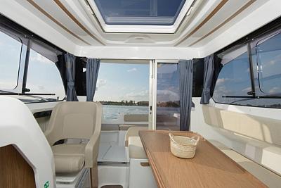 De kuip van de Antares 780 is flexibel in te delen. Hierdoor heeft u de keuze tussen zitplaatsen met tafel, of u bouwt eenvoudig de zithoek om tot een groot zonnebed! Of... wenst u een riante open kuip om bijvoorbeeld vanuit te vissen of te zwemmen? Ook dit is snel en eenvoudig te realiseren. De doorgang naar het voordek is veilig door de aanwezigheid van de zeerailing.
