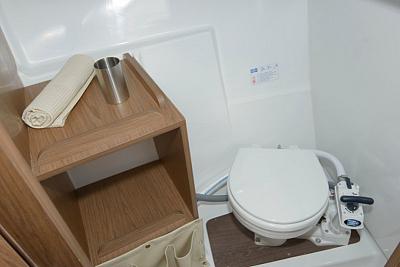 In het vooronder van de Beneteau Antares 780 heeft u een afsluitbare sanitaire ruimte met een vast toilet en een dubbel bed met een lengte van 2,20 meter. In de stuurhut vindt u verder een eenvoudig keukenblokje met stromend water en een koelkast. Ook een tweepits kooktoestel is aan boord, deze hebben wij in de kuip ondergebracht. De zithoek met U- bank is naar wens om te bouwen tot een extra bed. Geschikt voor 1 volwassene of 2 kinderen.