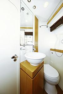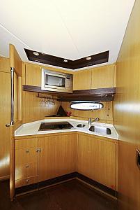 Compass, Tridata: Log, Speed & Depth, GPS Plotter, Autopilot, VHF, Radar, Radio with CD Player, TV set, Cockpit speakers, Air-conditioned interior, Pressurized hot and cold water system, Electric head, Fully equipped galley with Microwave oven & Fridge, Manual bilge pump, Electric bilge pump, Liferaft, 24v electrical system, Shore power inlet with battery charger, Generator, Teak flooring in cockpit, Cockpit table, Hydraulic gangway.