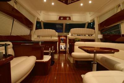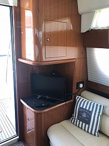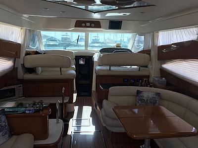 Very solid model from Jeanneau Prestige, this 46 is extremely comfortable, with 3 double cabins and 2 heads, She comes fully equipped with all extras including Generator and Air conditioning with chiller, hydraulic passerelle, Raymarine GPS, Autopilot, bow and stern thrusters, Flybridge bimini and much more. Easy cruising speed of 25 knots from the Cummins 500Hps which have been very well maintained and serviced. Highly recommended boat.