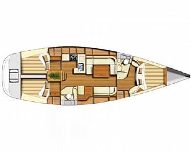 The Dufour 44 Performance sailing boat is equipped with complete galley, bimini top, stereo, TV/DVD, tender, performance sails, and full offshore safety equipment including EPIRB. It accommodates up to 10 guests for a day charter reaching the speed of up to 8 knots.