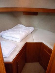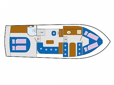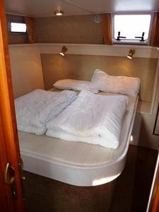 Aufteilung: abgetrennte Bugkabine mit einer V-Koje ; Dinette (Sitzgruppe) umbaubar zu 2 weiteren Schlafplätzen auf steuerbord ;